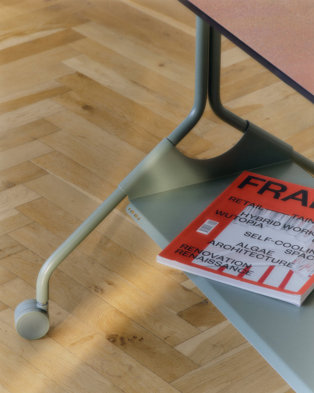 Staalplaat met poedercoating en satijnen afwerking. Moon Rollin’ is voorzien van hoogwaardige meubelwielen met een zachte PU-looplaag.
