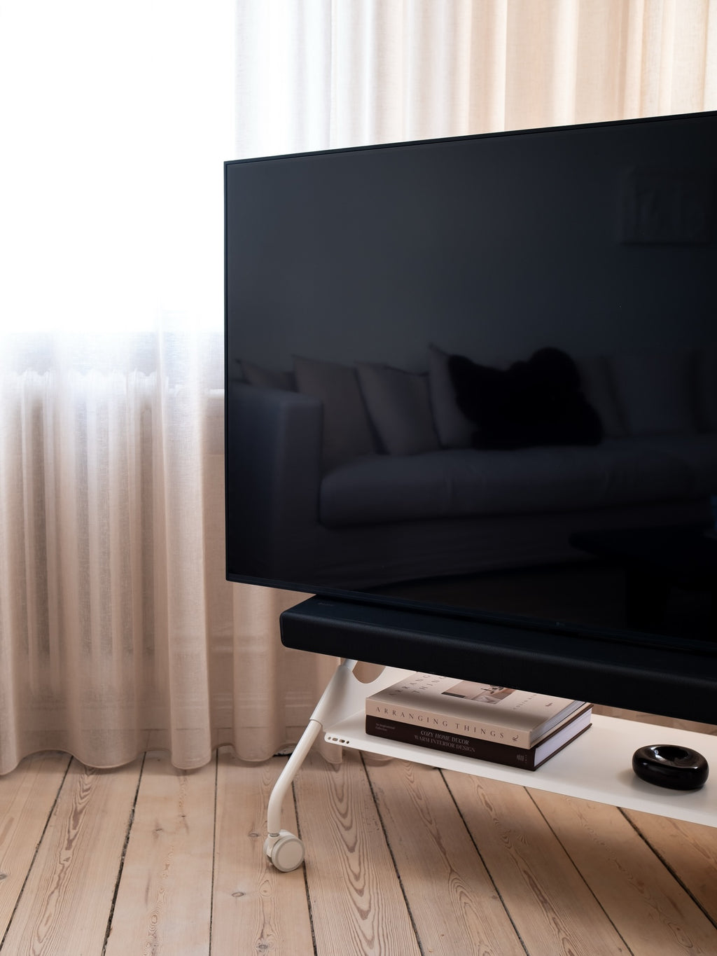 Onze Soundbar Bracket Set kan worden gemonteerd op al onze TV-standaards, met uitzondering van het Bloom-model.